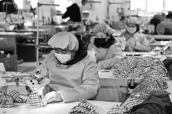 2月27日,在合肥市蜀山区经开区的一家户外用品公司,工人在生产防护口罩。目前,该公司日均生产近5000只可拆卸滤芯的口罩。连日来,蜀山区开设“绿色通道”,引导辖区具备生产条件的企业转产。记者 范柏文 摄