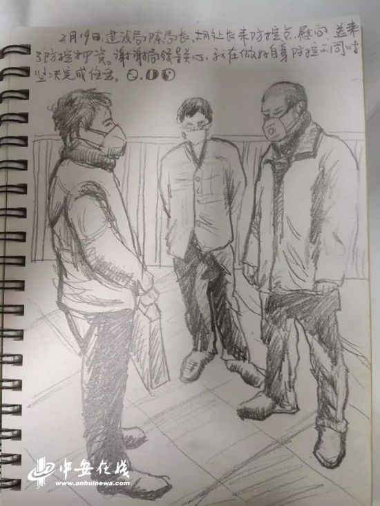 2月19日,局领导来防控点慰问,送来了防控物资。感谢局领导关心,我在做好自身防控的同时,坚决完成任务。