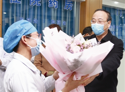 张祥安看望慰问市一院西院区(铜矿医院)女医务工作者集体,送上鲜花和祝福。记者卢志永摄