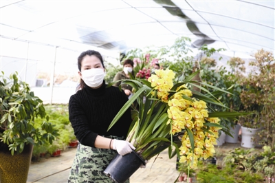位于石沛镇的全椒南塘花坊,是集花卉、盆景生产、园艺资材批发、园林绿化施工与养护、生态旅游观光体验为一体的家庭农场。图为工人们正认真打理花卉,准备网上销售包装。
