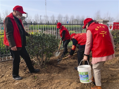 3月12日,南谯区吕赵社区组织10余名志愿者在桂香园小区,开展绿色家园“3·12”植树节活动。 计佳新摄