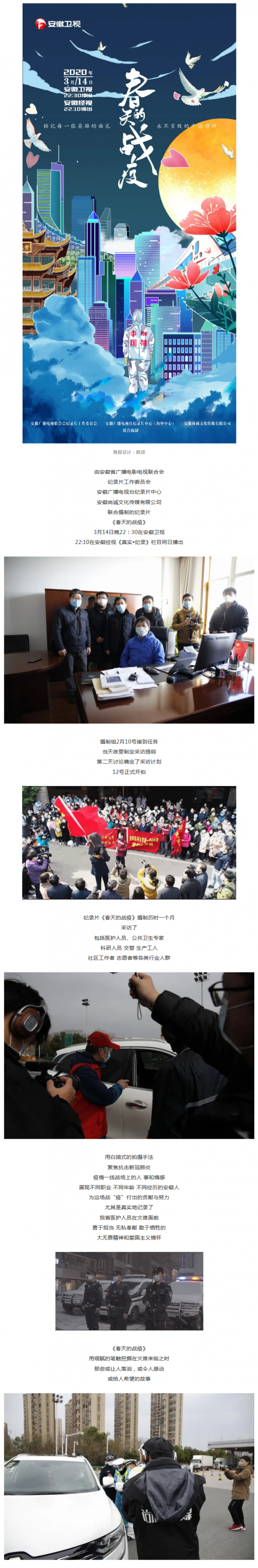 铭记每一张英雄的面孔——《春天的战疫》海报&宣传片同步首发! 2020-03-13 20:32 纪录安徽 扫描到手持设备 字号: 点击视频 让观众在平实质朴的画面和娓娓道来的故事里 体味令人骄傲的中国力量 震惊世人的中国速度 和永不言败的中国精神 传达出中华民族 万众一心牢不可破的 斗志和信念 复制网址 打印 收藏 关于我们 | 联系我们 | 加入我们 | 版权声明 | 手机访问 | 网站地图 | 留言反馈 | 我要投稿 中共滁州市委宣传部主办 滁州日报社承办 Copyright?2009-2010 Chuzhou.cn. All Rights Reserved 滁州日报社 版权所有 皖网宣备3412015001号 皖ICP备11004325号-1 热线电话:0550-3022685