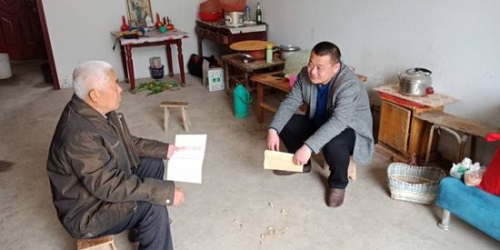 图为朱建波(右)到受处理的党员家中送达处理决定书。(资料图片)