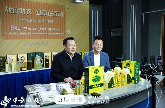 安徽省委常委、宣传部长虞爱华在直播平台推介安徽名优农产品( 摄影 刘玉才) 3月21日,由省委网信办主办、学习强国平台和抖音平台承办的“战疫助农”安徽省贫困县优质农产品网上系列销售活动展开。省委常委、宣传部长虞爱华走进舒城直播间,帮助销售农产品,并向广大网民和代言活动的网络达人表示感谢。