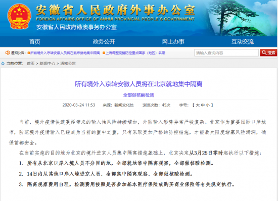 在当前实施的目的地为北京的境外进京人员集中隔离措施基础上,北京决定从3月25日零时起执行以下措施:
