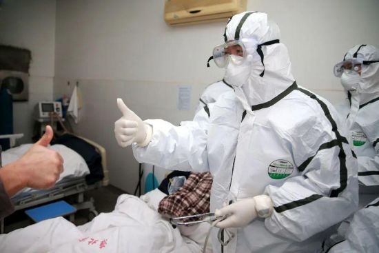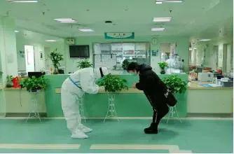 在中国科大附一院(安徽省立医院)第三批支援湖北医疗队整建制接管的华中科技大学协和医院肿瘤中心 Z6 重症病区。武汉的一对夫妻李先生和蒋女士治愈出院,夫妻双双把家还。出院前,蒋女士代表夫妻俩向医疗队领队、中国科大附一院(安徽省立医院)党委委员、南区分党委书记、感染病学专家鲁朝晖教授鞠躬,表达感谢之情,鲁朝晖随即回礼,“感谢病人理解我们的工作,感谢医患密切配合,共同战胜病毒。”