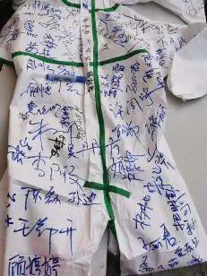 疫情发生后,安徽省先后派出1362名医疗卫生人员驰援湖北。3月18日,安徽第四批、第五批支援湖北抗疫医疗队员共374人平安返回家乡。临行前,队员们在一件防护服上纷纷签名,留下这件珍贵的“特殊战袍”。