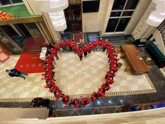 结束战“疫”任务后,安徽支援湖北第一批医疗队的队员们组成“爱心”队形,他们是最早支援湖北战“疫”一线的战士,也是坚守时间最长的队伍。