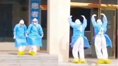 在安徽省宿州市灵璧县人民医院备用医院,为庆祝6名隔离人员出院,两位医护人员跳起了呆萌可爱的“天鹅舞”,最后还用手臂摆出“爱心”。网友直呼“没错,是天使的模样!”
