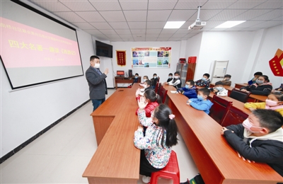 图为老师在和孩子们趣谈《西游记》。记者卢志永/图 章 舒/文