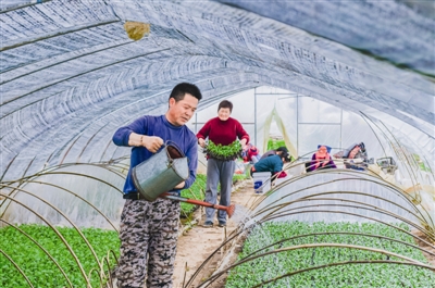 近日,南谯区沙河镇新塘村村民凡庆忠正和家人为西瓜幼苗嫁接、浇水。西瓜种植是新塘村的传统优势产业,近年来,该村结合市场需求推广西瓜种苗“订单培育”,一个大棚一季可为农户增加纯收入2万多元,取得良好的经济效益,带动当地农民增收。