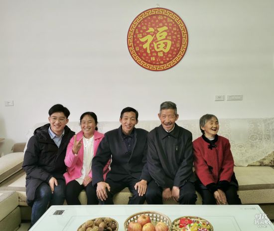 △平利县锦屏社区搬迁户汪显平一家合影。(总台央视记者贾林拍摄)