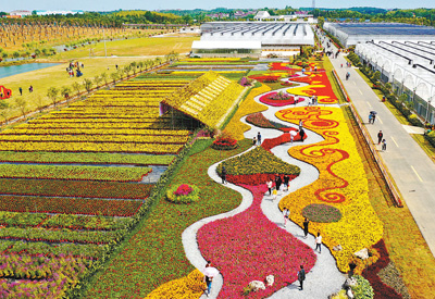 安徽省郎溪县某扶贫产业基地在“五一”假期举办花卉展,吸引周边群众赏花游玩。