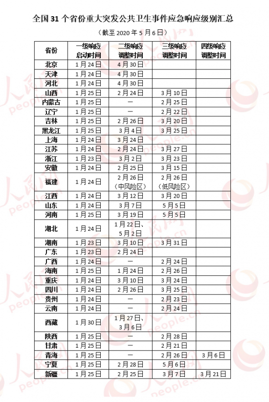 北京、天津、河北、上海、湖北、广东、西藏、宁夏等8个省份的应急响应级别是从一级降到目前的二级。