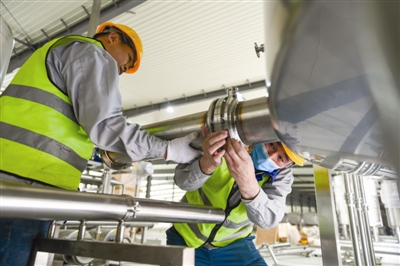 日前,琅琊经开区元气森林饮料生产项目,施工人员在安装无菌灌装设备。该项目由中外合资企业投资建设,引入行业领先的全自动无菌灌装线、超净碳酸生产线,在做好疫情防控的基础上加紧施工,预计6月建成投产,今年可实现年产值达2亿元。