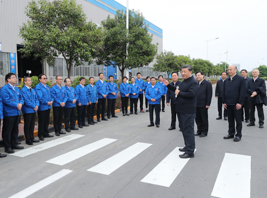 △2020年4月20日至23日,中共中央总书记、国家主席、中央军委主席习近平在陕西考察。这是4月22日,习近平在陕西汽车控股集团有限公司考察时,同企业职工亲切交流。