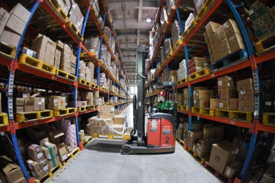△在北京市顺义区菜鸟物流仓库,一名工作人员在摆放货物。一季度,网上会议、线上交易、在线教育等促进信息传输、软件和信息技术服务业增加值同比增长13.2%;实物商品网上零售额同比增长5.9%。
