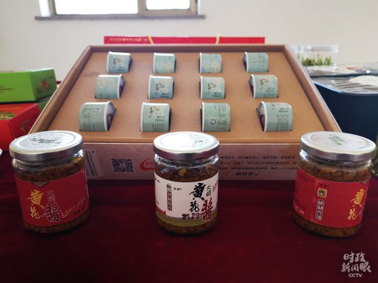 △以黄花为原材料制作的黄花饼、黄花酱、真空冻干黄花。(总台央视记者张晓鹏拍摄)