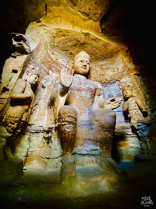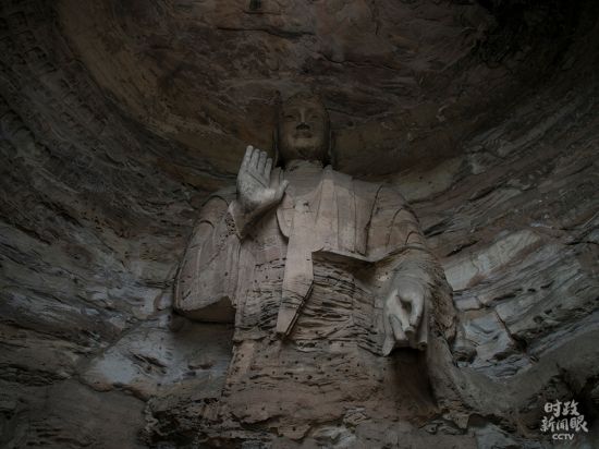 △第3窟是云冈最大的洞窟,又名“灵岩寺”,属于中期石窟。主尊阿弥陀佛高10米。(总台央视记者李辉拍摄)