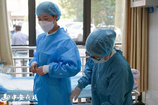 5月11日早晨,在安徽省儿童医院急救室,主管护师邹纯元正进行工作预演。