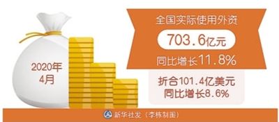 本报北京5月14日电(记者王珂)商务部14日举行的网上例行新闻发布会上,商务部新闻发言人高峰介绍,4月,全国实际使用外资703.6亿元,同比增长11.8%。