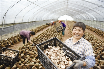 5月15日,南谯区章广镇孟洼村食用菌产业园,村民们正在采摘香菇。2019年初,孟洼村党支部立足本村丰富的林木资源,采取“村集体+公司+农户”的形式,引进浙江一家食用菌企业,投资4.8亿元兴建占地面积约5000亩的大型食用菌产业园。目前,产业园一期已新建标准化大棚150个,2019年食用菌销售收入达1120万元,带动周边200多户农户就业,创造400多个就业岗位,户均年增收3万元。
