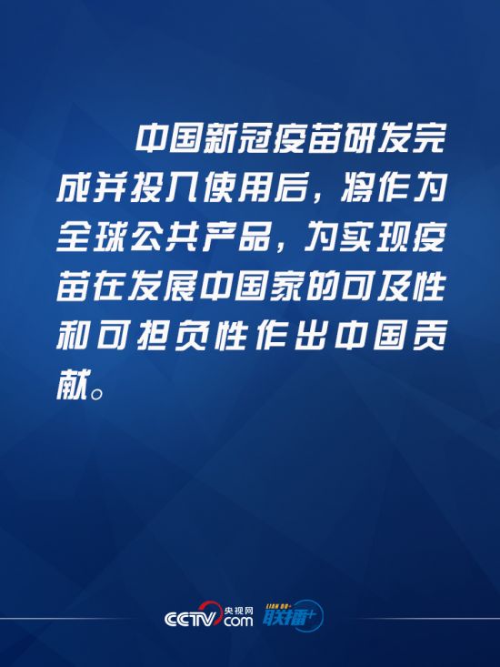——中国新冠疫苗研发完成并投入使用后,将作为全球公共产品,为实现疫苗在发展中国家的可及性和可担负性作出中国贡献。
