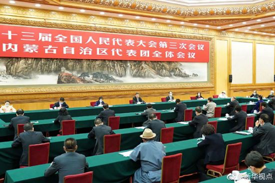 2018年3月5日,习近平参加他所在的十三届全国人大一次会议内蒙古代表团审议。
