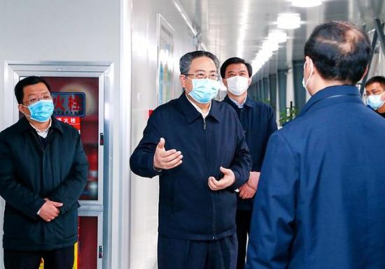 2020年2月21日,安徽省委书记、省疫情防控工作领导小组组长、省疫情防控工作应急综合指挥部指挥长李锦斌深入铜陵旭创科技有限公司,调研督导疫情防控和复工复产工作。(徐国康摄)