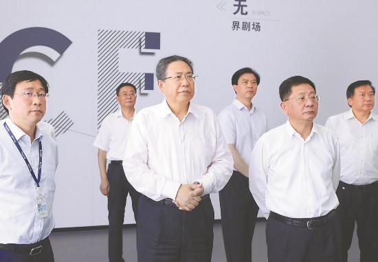 2019年6月26日,安徽省委书记李锦斌在安庆市筑梦新区了解、体验5G创新应用。(徐国康摄)