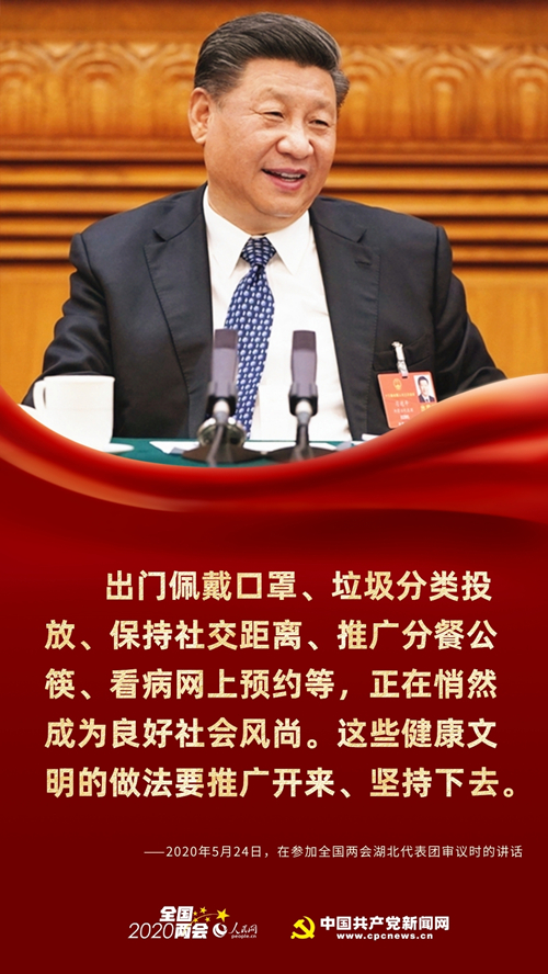 同时,习近平指出,出门佩戴口罩、垃圾分类投放、保持社交距离、推广分餐公筷、看病网上预约等,正在悄然成为良好社会风尚。这些健康文明的做法要推广开来、坚持下去。