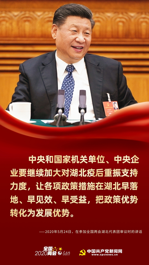——中央和国家机关单位、中央企业要继续加大对湖北疫后重振支持力度,让各项政策措施在湖北早落地、早见效、早受益,把政策优势转化为发展优势。