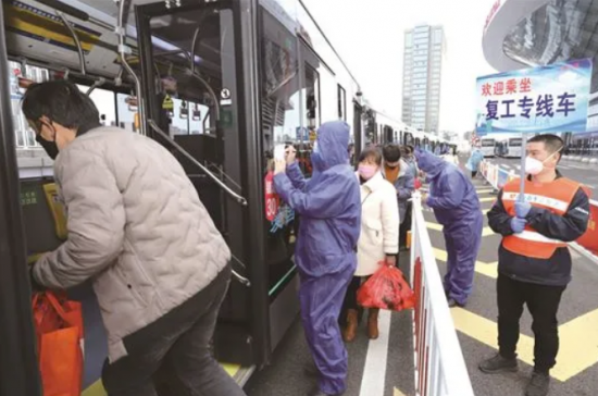 江苏交通根据“农民工集中出行清单”,优先制定专车、专列、专机运输方案,指导运输企业落实“一辆车、一家企业、一个点、一批人”的“四个一”原则,配备专员做好随车服务。