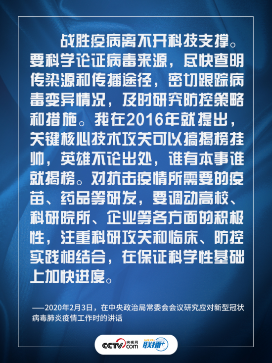 新冠肺炎疫情暴发以来,习近平总书记多次强调向科学要答案、要方法,为科技战“疫”指明方向。《联播+》特进行梳理,与您一起学习领会。