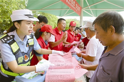 大队民警通过发放宣传单、摆放宣传展板等方式,面对面地向居民介绍扫黑除恶、文明创建及志愿服务活动等知识,号召大家积极参与扫黑除恶,为构建平安和谐的生活环境贡献力量。