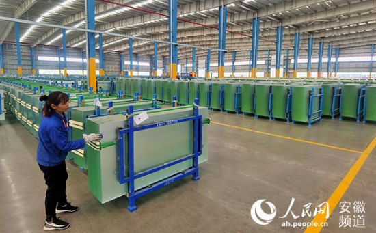 凤阳硅谷智能有限公司里,工人正在整理刚生产出来的玻璃。周坤 摄