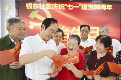 6月28日,南谯区银东社区为6名7月1日入党的老党员集体过“政治生日”,他们中党龄最长的已有63年,最短的也超过50年。活动中,社区党委给他们每个人都送去精美的“政治生日”贺卡和生日蛋糕。老党员们结合自身实际,互相交流入党以来的心路历程,畅谈所思所想,分享心得体悟,大家纷纷表示要时刻牢记共产党员身份,积极发挥余热,参与到社区各项工作中。