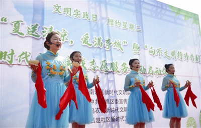 6月30日,在南谯区新时代文明实践中心,演员们在进行快板说唱《文明新风》。当日,南谯区新时代文明实践中心举行了“夏送清凉,爱满亭城”暨“向不文明行为告别”新时代文明实践志愿服务活动启动仪式。活动通过向清洁工人和建筑工人等赠送夏日清凉用品、快板说唱《文明新风》、“向不文明行为告别”承诺签名等形式,推深做实新时代文明实践工作,倡导文明健康、绿色环保的生活方式。记者卢志永 通讯员汪 娟摄
