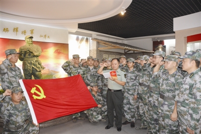 6月30日,天长市人武部组织民兵党员在罗炳辉将军塑像前重温入党誓词。当日,该部组织在训官兵来到省国防教育基地——天长市博物馆,开展深化“传承红色基因,担任强军重任”主题教育活动,通过参观罗炳辉将军生平事迹展馆、重温入党誓词等,深刻了解革命前辈在中国共产党的领导下不怕牺牲、前仆后继的革命精神和坚定的革命信仰,激励官兵坚定理想信念,强化使命担当,积极投身强军实践。