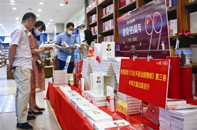 滁州网讯 7月16日,滁州新华书店,市民在阅读选购《习近平谈治国理政》第三卷。