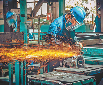 四川省绵阳市,一家汽车零部件制造企业的生产车间内,工人正在作业。