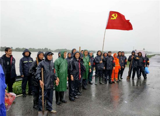 全县广大党员干部积极响应号召,迅速投身抢险救灾工作,在抢险一线当尖兵、打头阵、挑重担,积极参与巡堤查险、险情处置、安抚群众等工作。古河镇武装干事陆成主要任务是运送物资,双腿由于长时间在水中浸泡导致麻木,走路一瘸一拐的,即使如此仍奋战在抗洪一线。在得知圩区乡镇防汛需要支援时,六镇镇大殷村支委委员田明力组织27名党员群众立即奔赴支援地点,分3组进行巡查堤坝、填装沙袋、清理杂草。“现在村里年轻人都出去打工了,为了保证大堤安全,作为老党员,我们应该带头上。”有着40多年党龄的徐仕斌曾在武岗镇官渡乡任职,这一次虽然他已经退休,但是看着不断上涨的水位,已经65岁的徐仕斌套上红袖章主动请战,指导年轻的防汛队员排查险情、挖沟疏渠。(汪洋)
