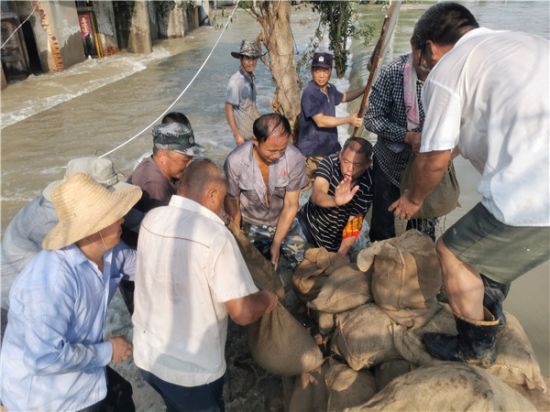 7月20日,全椒县古河镇党员干部群众在抢险。沈果 摄