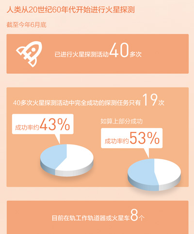 从20世纪60年代人类首次开展火星探测开始,截至今年6月底,人类已进行40多次火星探测活动。