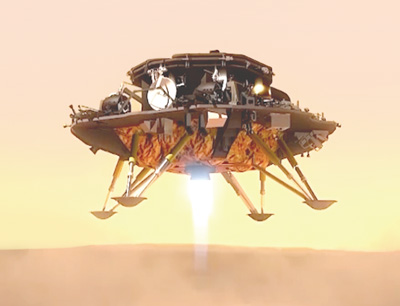 着陆。着陆系统降落在火星表面。这个环节难度很大,需要着陆系统完全自主导航控制。