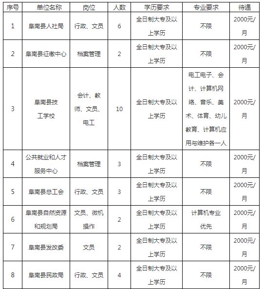 招聘对象:2018届毕业以来离校未就业的普通高等学校毕业生,大专以上学历。