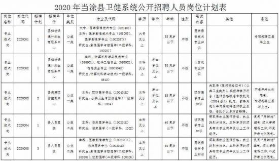 马鞍山市当涂县卫健系统招聘60人