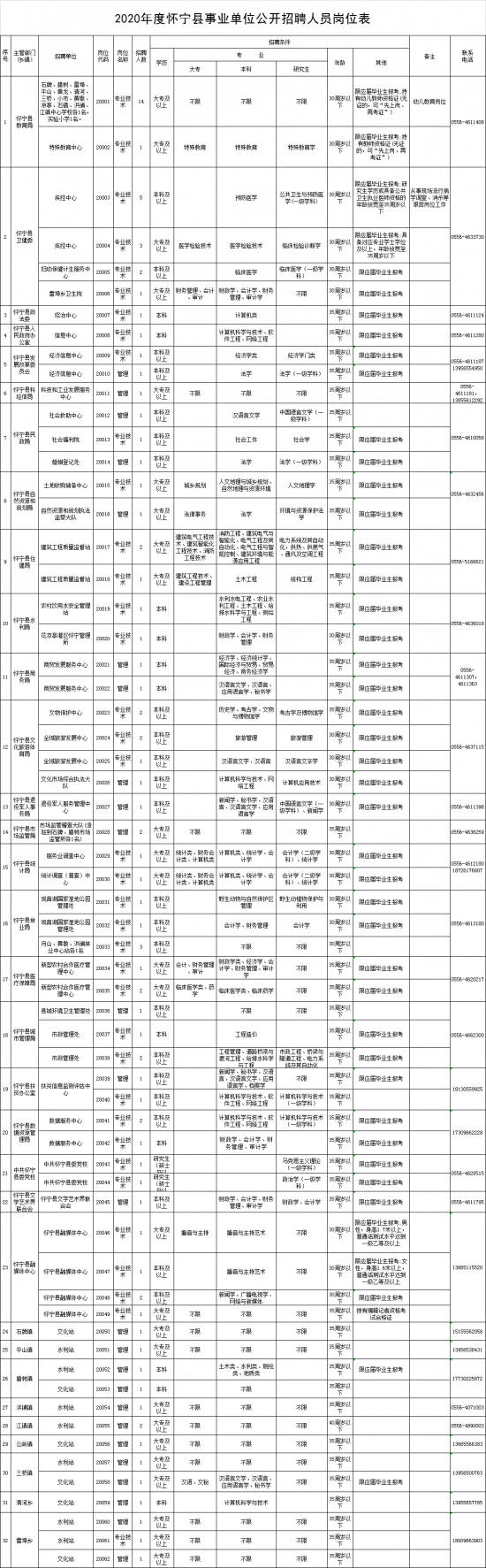 安庆市怀宁县事业单位招聘93人