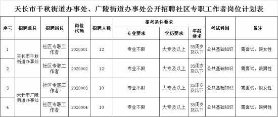 滁州市天长千秋街道办事处、广陵街道办事处招聘44人