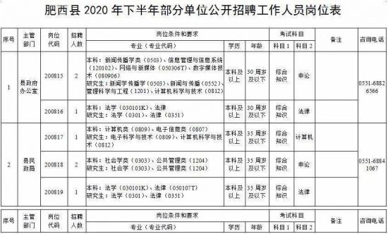 报名方式:报考人员登陆肥西县人民政府网《人事招考》栏目,点击招聘公告下方“网上报名”系统即可报名。
